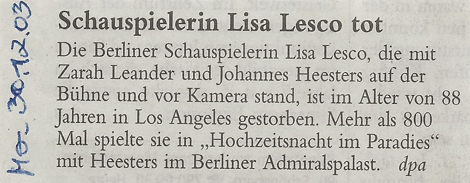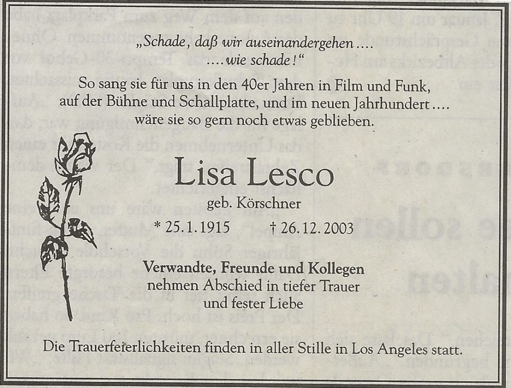Berlin geboren. Sie verstarb am 26. Dezember 2003 mit