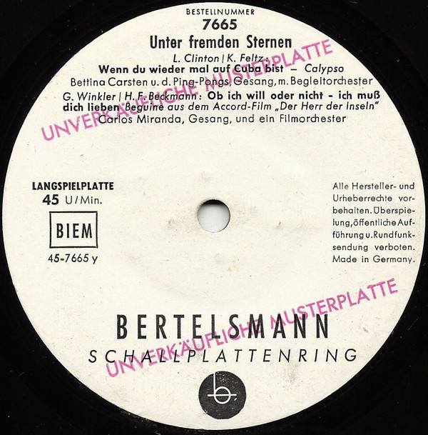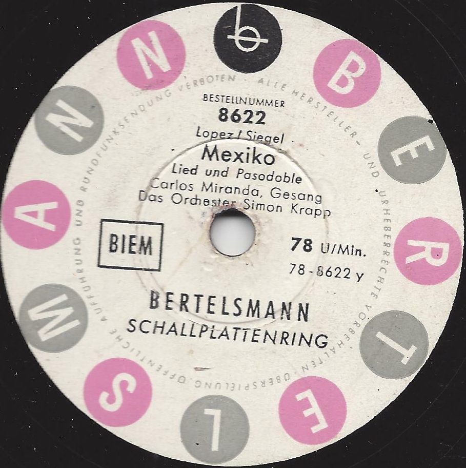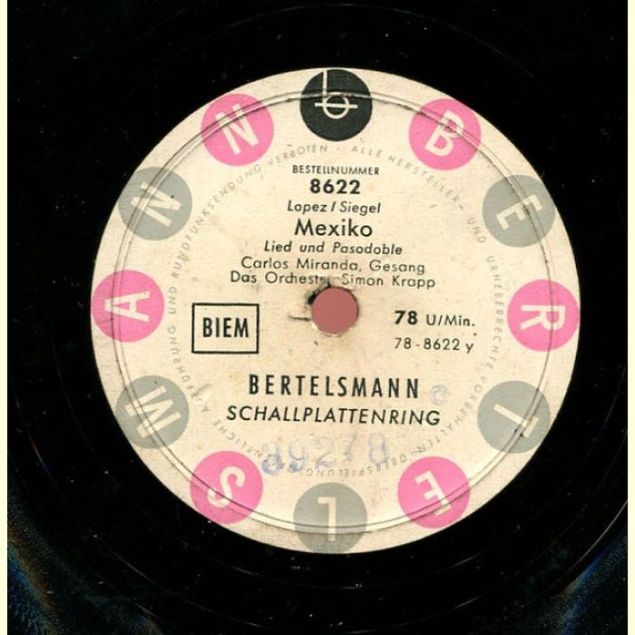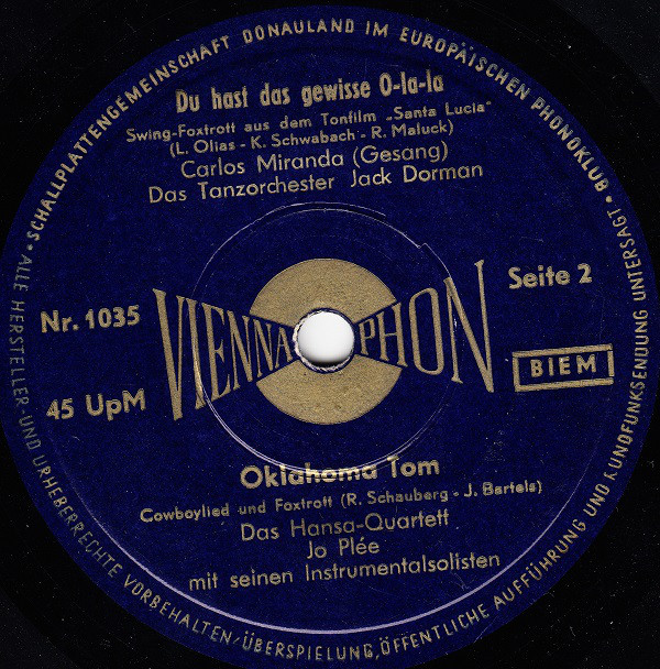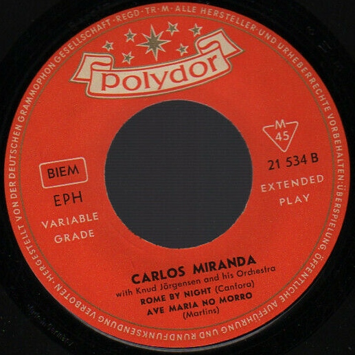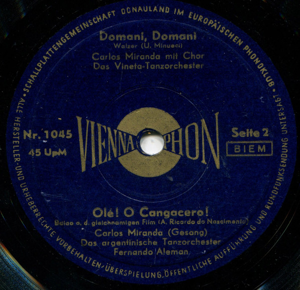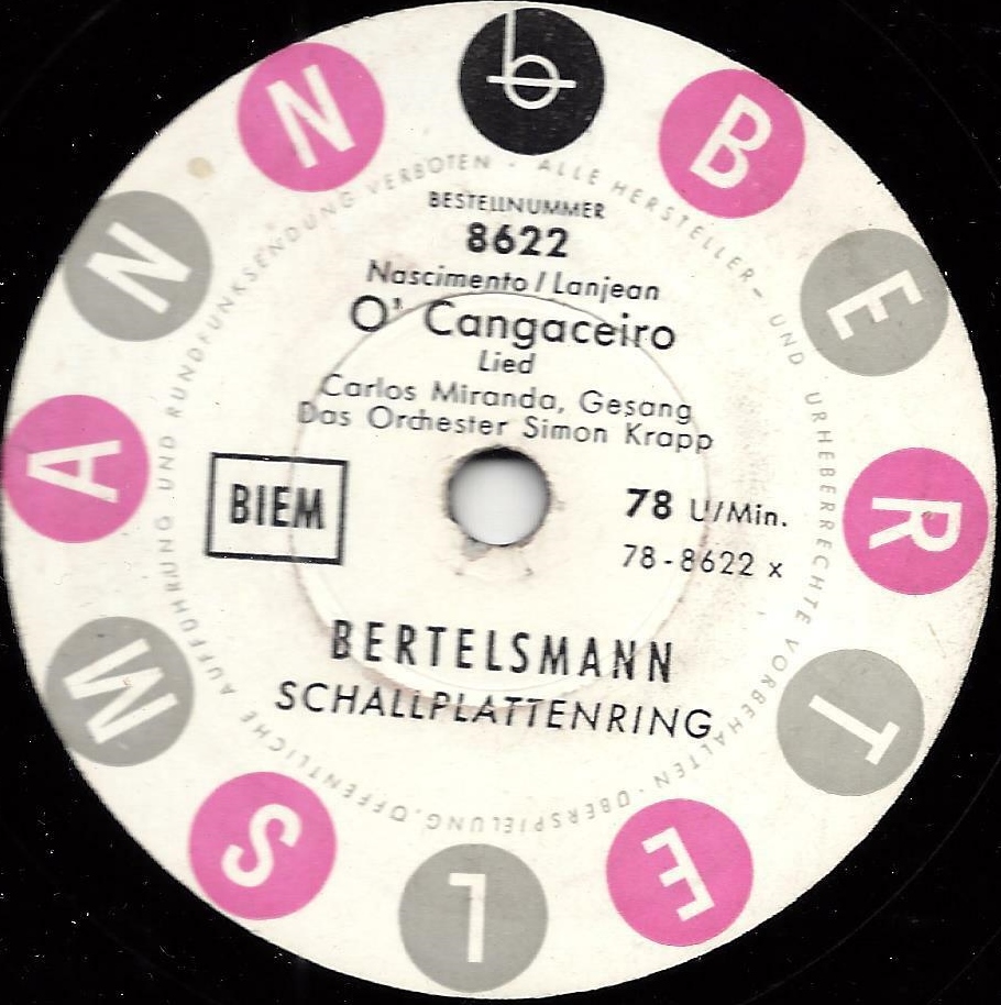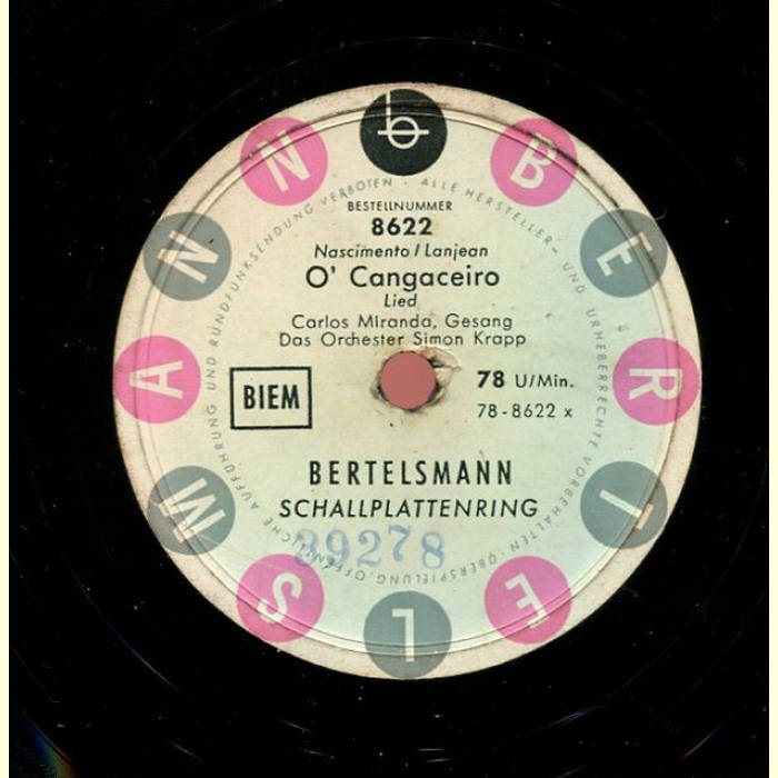 Im Netz fand ich bei BERTELSMANN ebenfalls Carlos Miranda auf einer Schellack mit einer Alternativ-Aufnahme (anderes Orchester !) von "O Cangaceiro" und einem weiteren Titel auf einer 45er-EP: