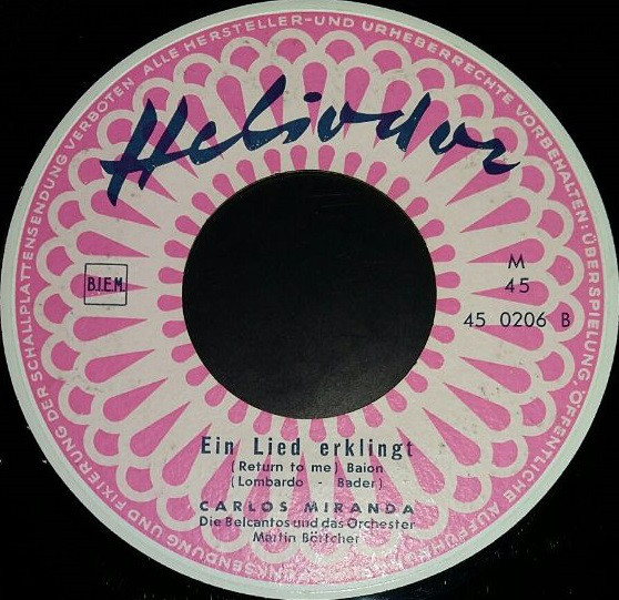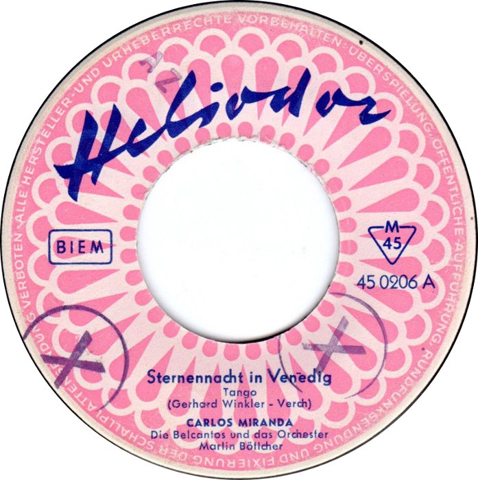 03 58....45 0206 A....CARLOS MIRANDA Die Belcantos und das Orchester Martin Böttcher..Sternennacht in Venedig/ B....Ein Lied erklingt (Return to me)