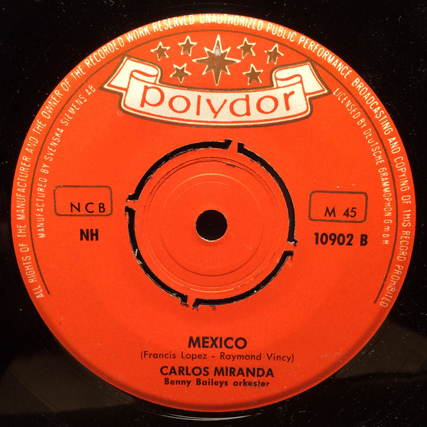 ?? 60....NH 10902 A....CARLOS MIRANDA Benny Baileys orkester..A Little Kiss Is A Kiss, Is A Kiss/ B….Mexico
