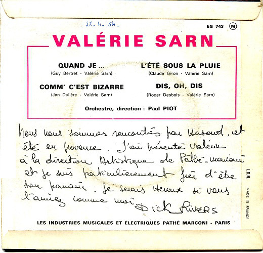 um 1964 mit einigen Platten aktiv. DICK RIVERS scheint sie