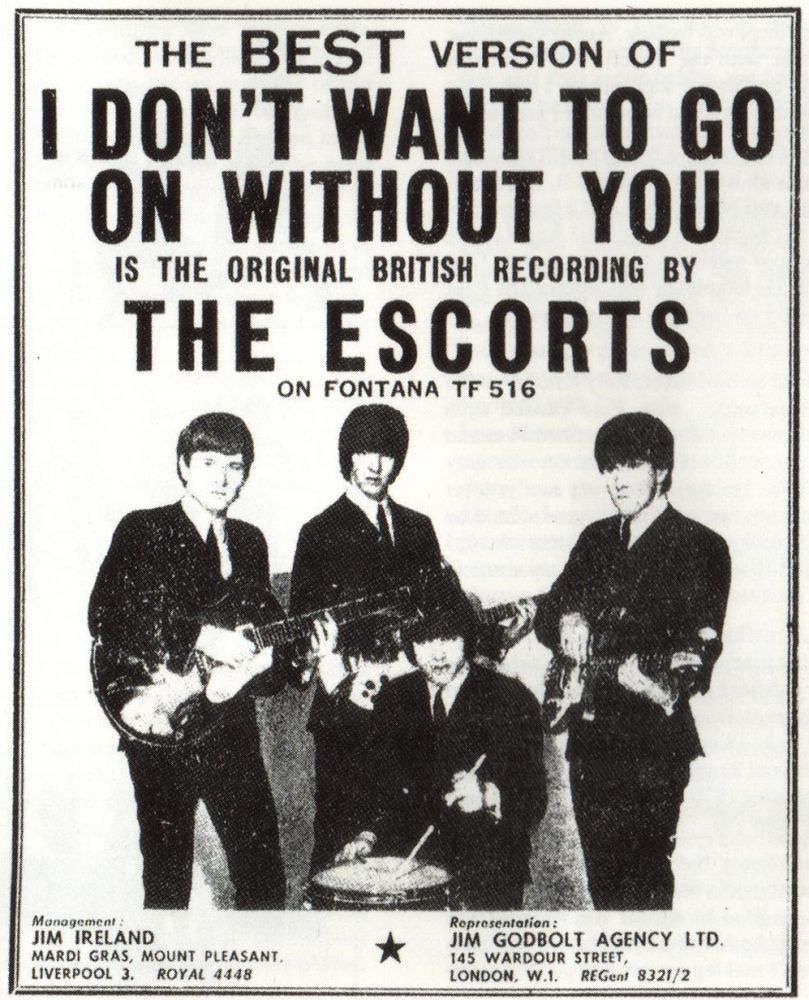 Und wieder hatten die Escorts Pech. John Kinrade: „Die Version von “I Don't Want To Go On Without You“ der Drifters war eine obskure B-Seite einer Platte, die nicht beworben worden war. Pete Clarke hat sie irgendwo ausgegraben. Wir haben unsere Version herausgebracht, aber dann haben die Moody Blues ihre veröffentlicht. Viele DJs haben unsere Version neben ihrer gespielt und die meisten sagten, dass sie unsere vorziehen.“