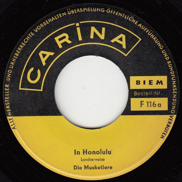 11 61....F 116 a....Die Musketiere..In Honolulu/ b....Droben im Oberland (dann POLYDOR 24 999 als "Die drei Musketiere")