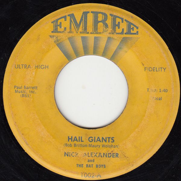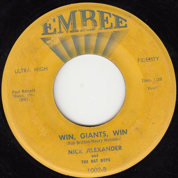 ?? 57....1002-A....NICK ALEXANDER and THE BAT-BOYS..Hail Giants/-B….Win, Giants, Win (Delta-Nr.: 21694/95)