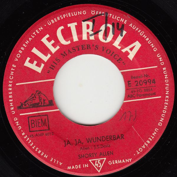 Ich bin mir zwar nicht ganz sicher aber ich denke, der Mit-Autor vom "Rock And Roll Waltz" Shorty Allen, ist mit drei Singles in den Jahren 1958 und 1959 auch selbst musikalisch aktiv geworden. Es handelt sich um Instrumentalstücke, teilweise mit Chorgesang. Seine erste Single gab es auch bei uns auf ELECTROLA und die A-Seite seiner ersten Single wurde von Chris Howland gecovert.