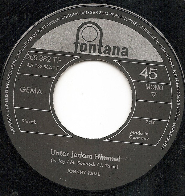 Etwa 1967 begann JOHNNY TAME mit deutschsprachigen und englischen