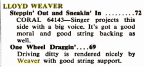 'Cowboy Pal' LOYD WEAVER war 1947 bis 1953 auf Platten zu hören.