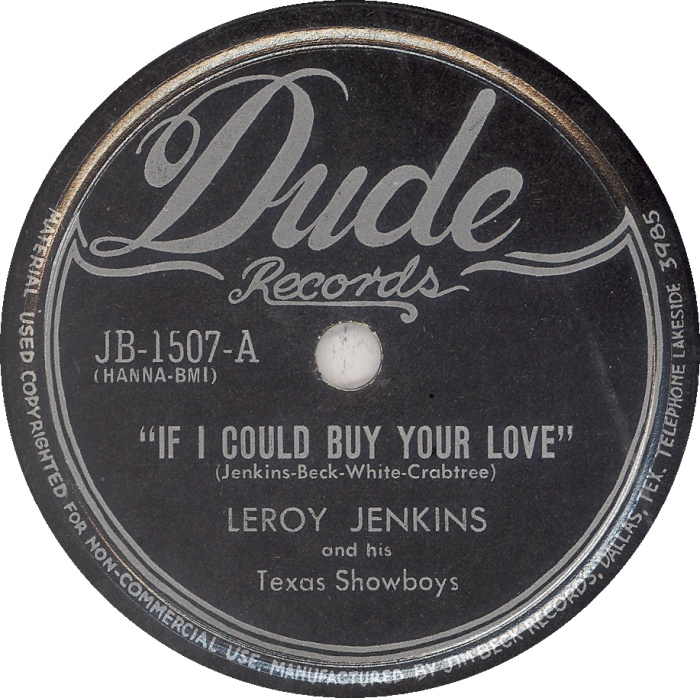 JENKINS selber war im Spätherbst 1949 auf Talent Records zu hören, wo im
