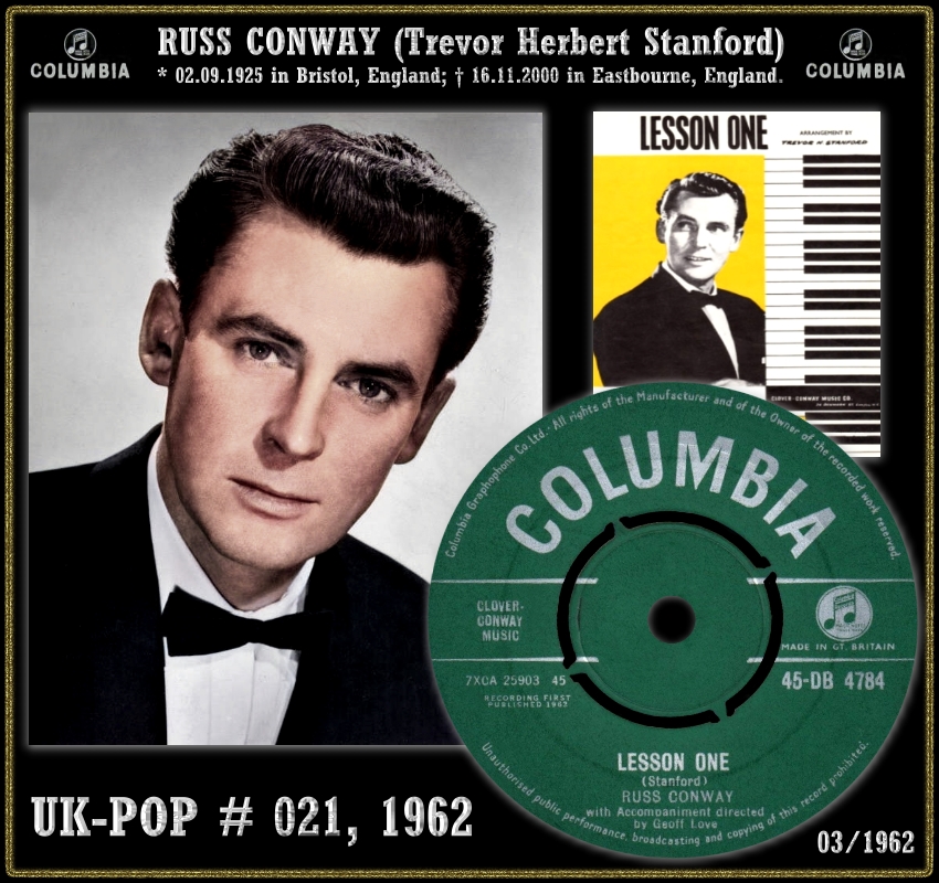 Der britische Pianist, Komponist und Sänger Russ Conway wurde am 2. September 1925 in Bristol, England, als Trevor Herbert Stanford geboren und verstarb am 16. November 2000 in Eastbourne, Grafschaft East-Sussex, England, an Magenkrebs. Sein ziviler Name scheint oft auch als Autorenname auf.