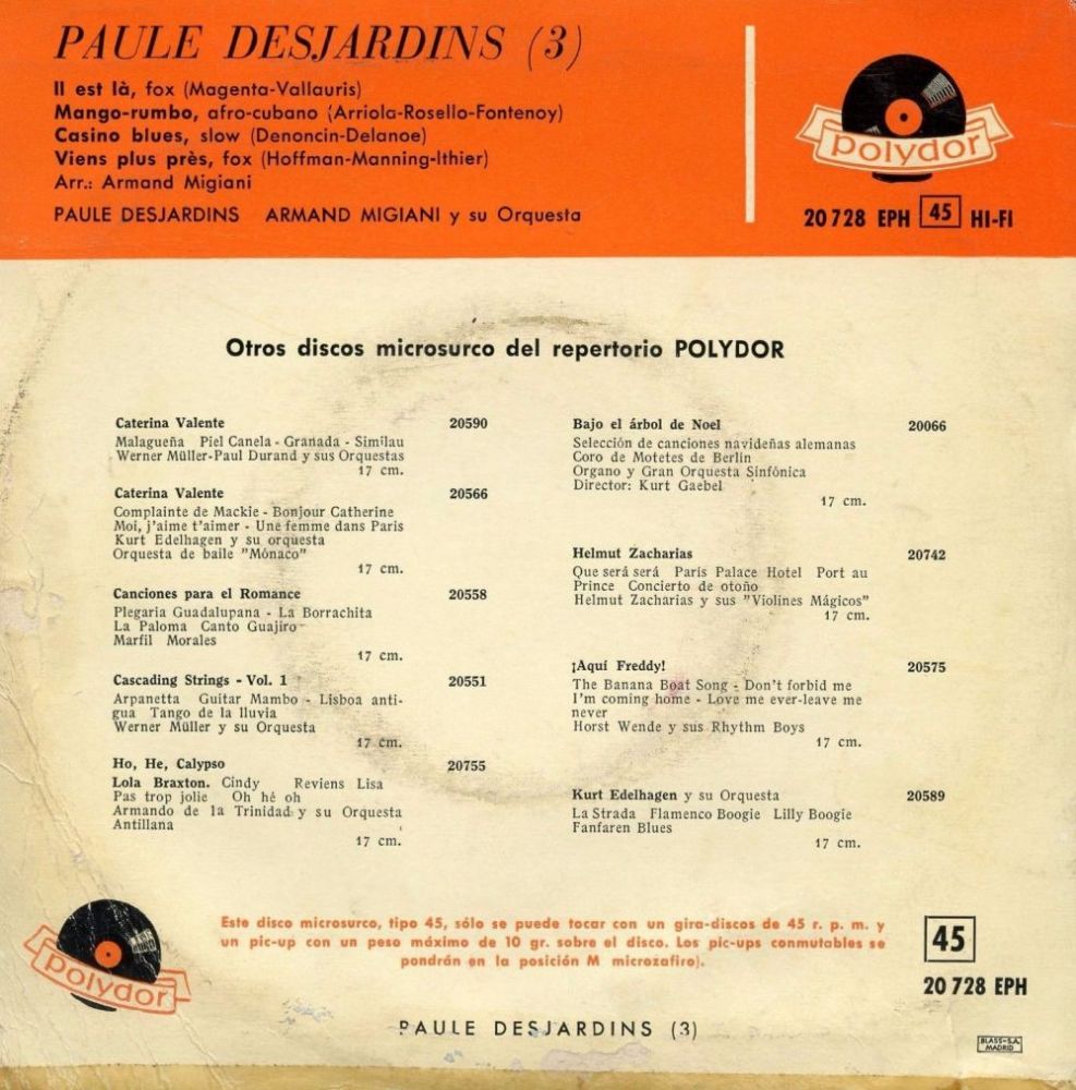 PAULE DESJARDINS war zwischen 1956 und 1958 auf mehreren