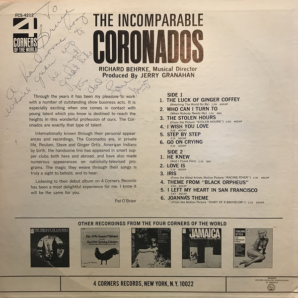 1964 - THE INCOMPARABLE CORONADOS - 4 CORNERS OF THE WORLD FCL-4212 (Stereo FCS-4212)