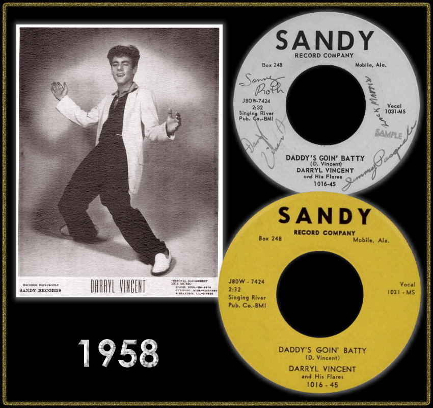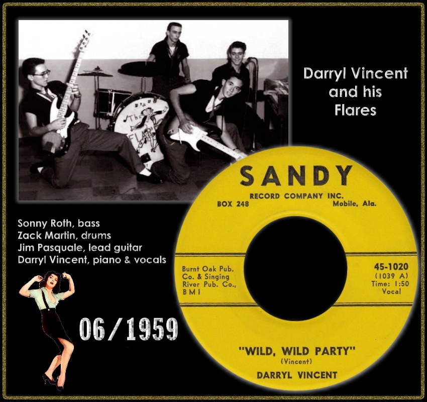 1957 gründete er mit dem Lead-Gitarristen Jim Pasquale die Formation Darryl Vincent and His Flares. Mit von der Partie waren noch Sonny Roth am Bass und Zack Martin am Schlagzeug. 1959 konnten sie bei SANDY in Mobile, Alabama, ihre ersten Singles veröffentlichen. 1960 machten sie bei KRASH in New Orleans, Louisiana, zwei Aufnahmen, die aber erst 1962 veröffentlicht wurden.