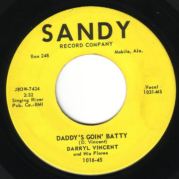 01 59....1016-45....DARRYL VINCENT and His Flares..Daddy's Goin' Batty (J80W 7424 1031 MS)/Mercy Me (J80W 7425 1032 MS)