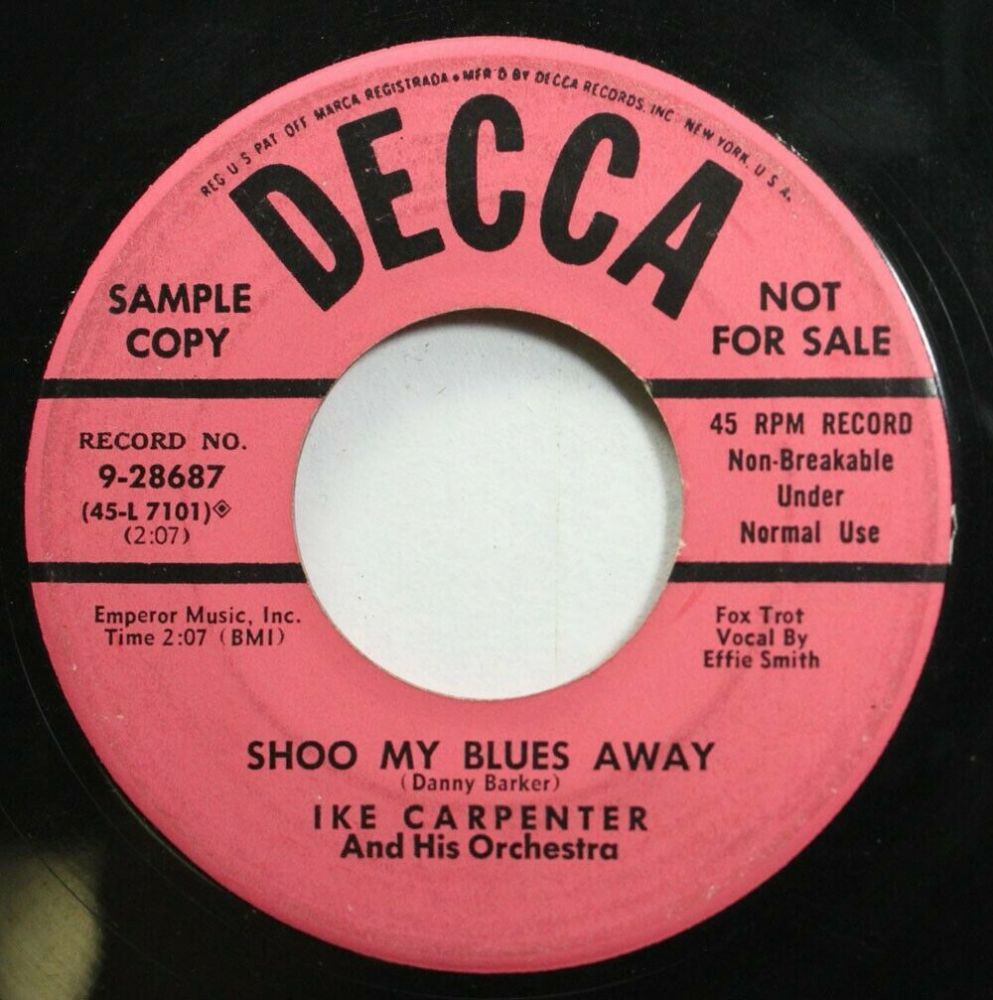 06 53....9-28687....IKE CARPENETER And His Orchestra - Vocal by Effie Smith..Shoo My Blues Away (45-L 7101)/Ain't Nothin' Nothin' Baby Without You (45-L 7098)