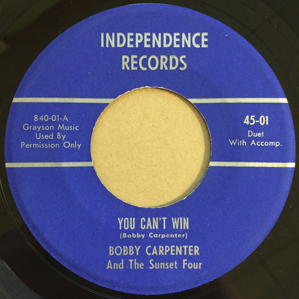 ?? 61....45-01....BOBBY CARPENTER And The Sunset Four..You Can't Win (840-01-A)/Kennedy And Johnson Election "60" (840-01-B)