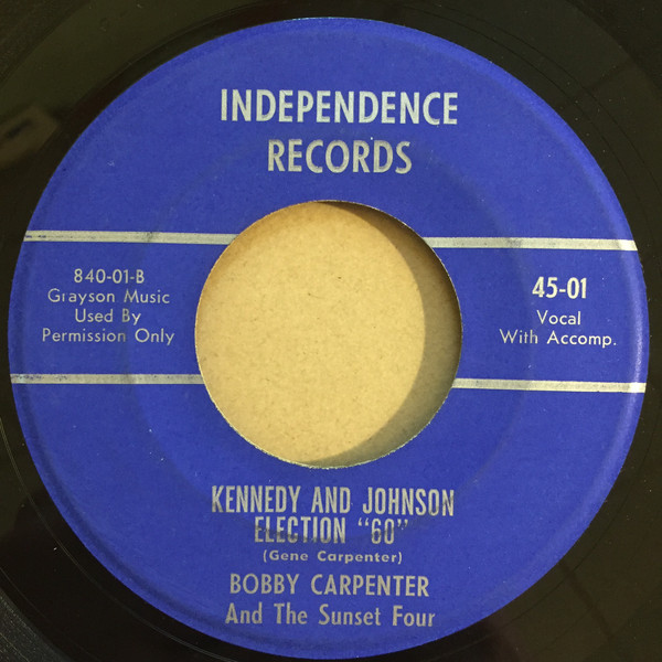 Die vermutlich einzige Single von Bobby Carpenter bringt mich zum Grübeln. Die Präsidentenwahl fand nämlich im November 1960 statt und die Single stammt, wenn die KING-Matrix korrekt ist, aus dem Jahre 1961. Der Hinweis "Used By Permission Only" verwundert mich auch ein wenig.