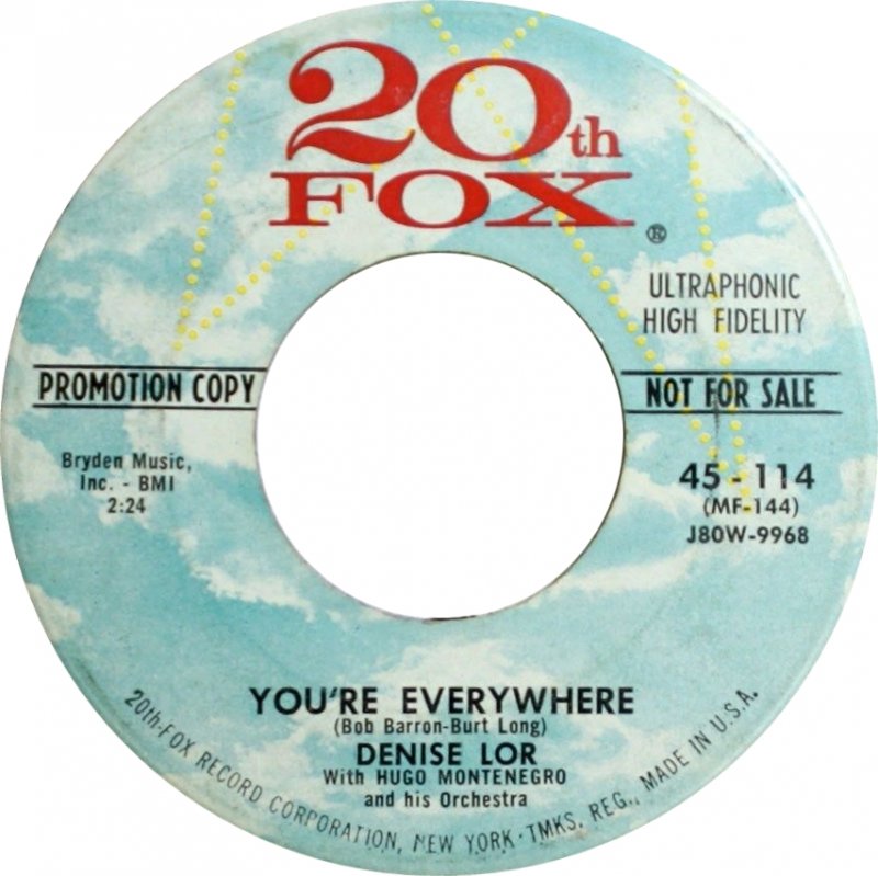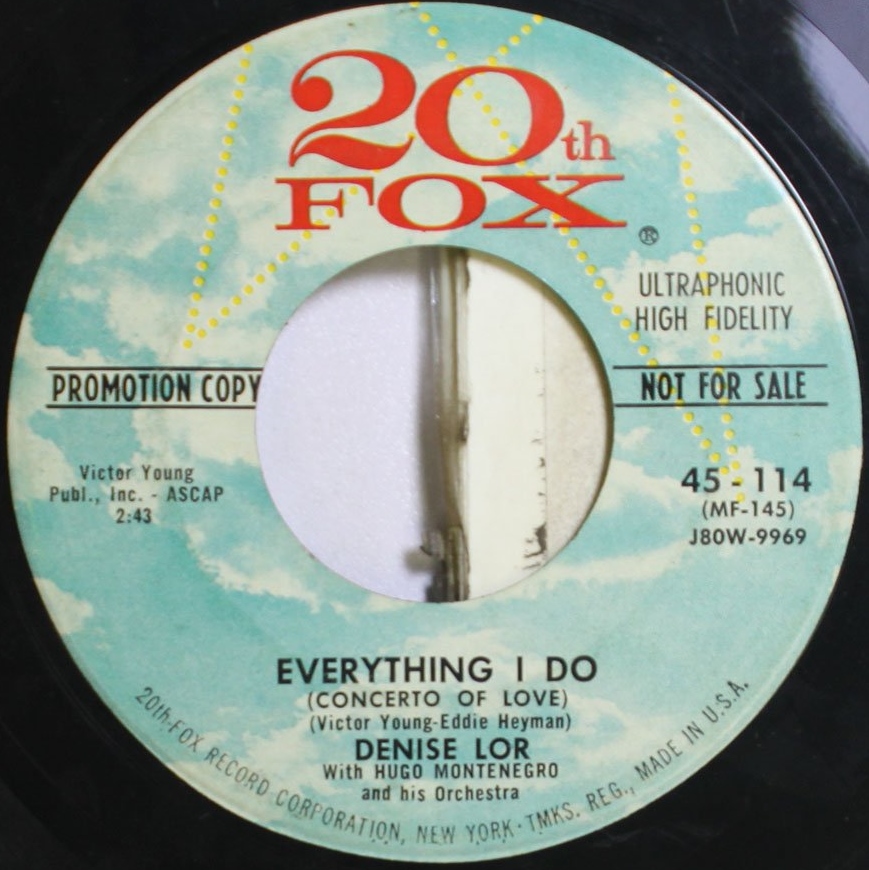 10 58....45 - 114....DENISE LOR With HUGO MONTENEGRO and his Orchestra..You're Everywhere (MF-144 J8OW-9968)/Everything I Do (Concerto Of Love) (MF-145 J8OW-9969)