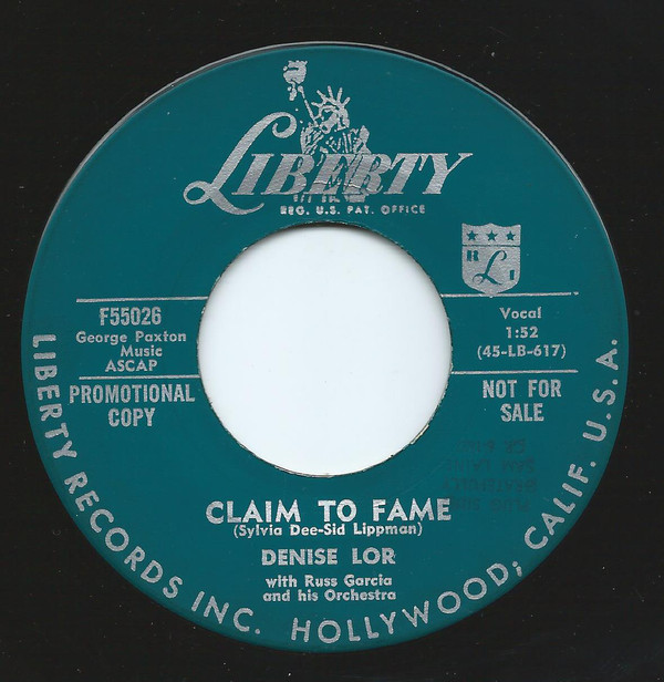 08 56....F55026....DENISE LOR with Russ Garcia and his Orchestra..Claim To Fame (45-LB-617)/With Every Breath I Take (45-LB-618)