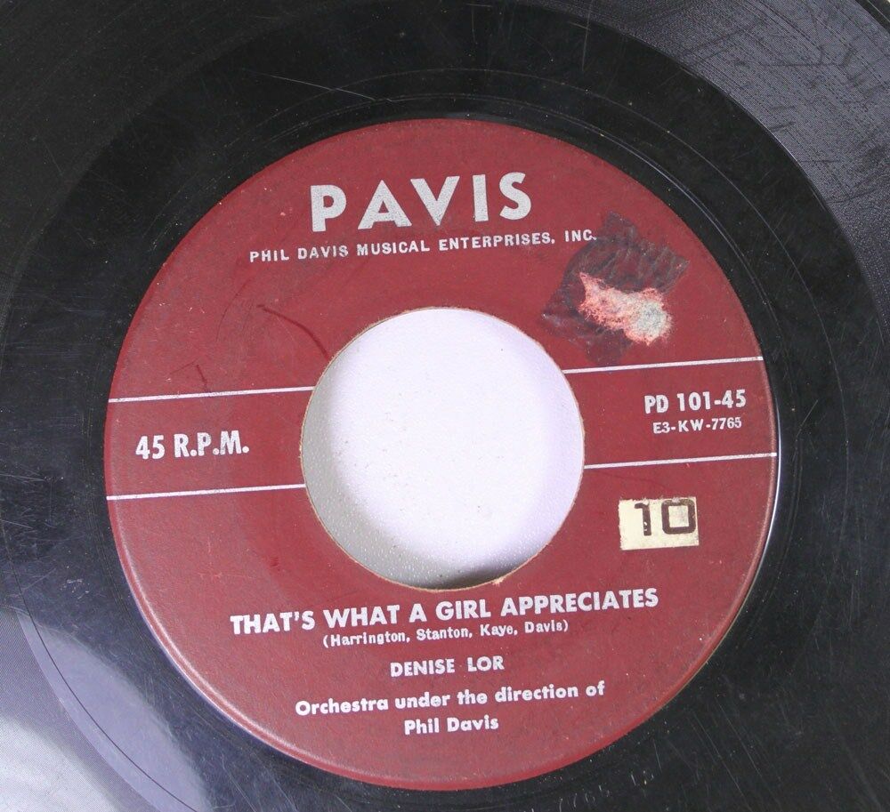 03 54....PD 101-45....DENISE LOR Orchestra under the Direction of Phil Davis..That's What A Girl Appreciates (E3-KW-7765)/Orchestra under the Direction of Earl Paul..Whenever I'm Near You (E3-KW-7766)