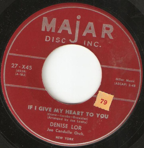 09 54....27 - X45....DENISE LOR Joe Candullo Orch. ..If I Give My Heart To You (4529 A-103)/Hello Darling (4530 A-104)