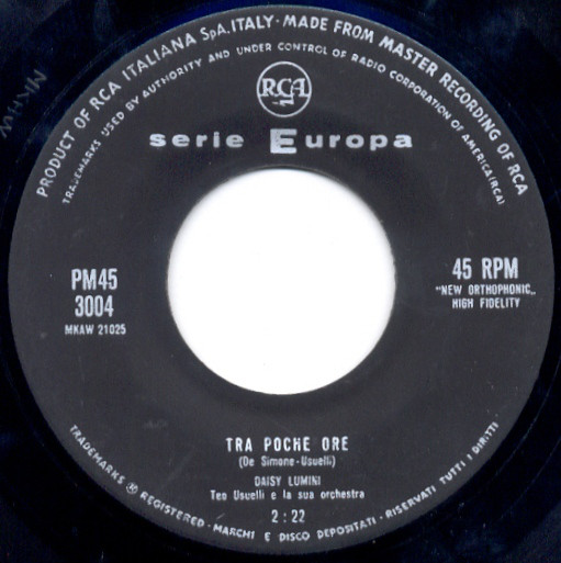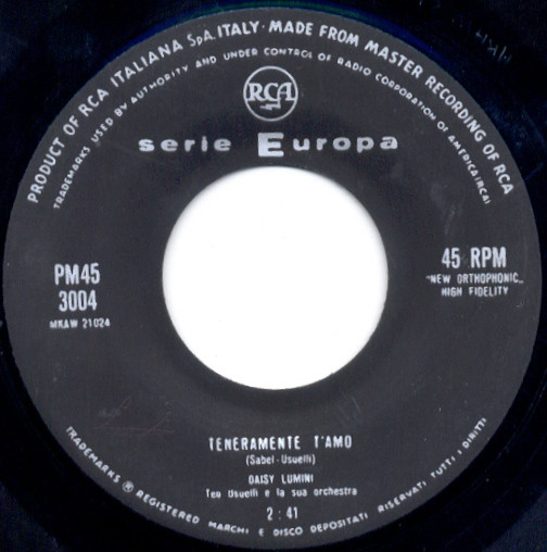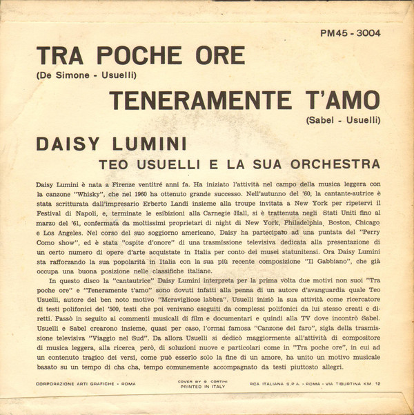 ?? 61....PM45 3004....DAISY LUMINI Teo Usuelli e la sua orchestra..Teneramente t'amo (MKAW 21024)/Tra poche ore (MKAW 21025)