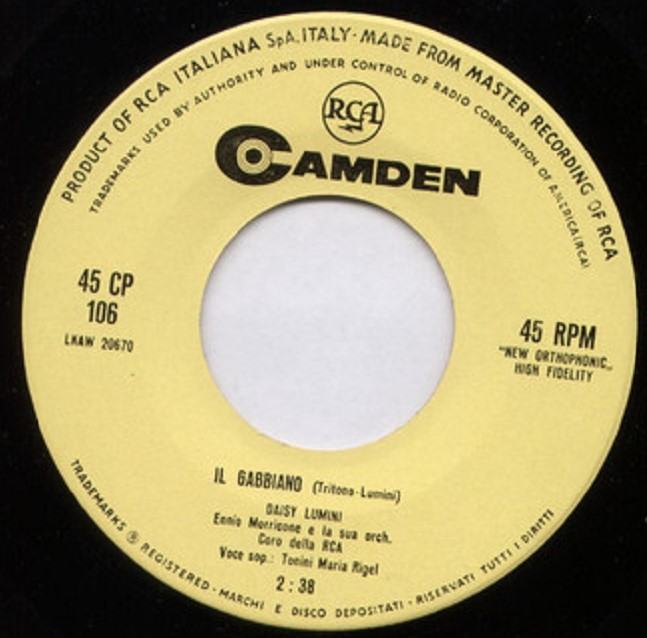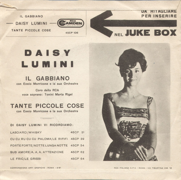 03 61....45 CP 106....DAISY LUMINI Ennio Morricone e la sua orch. Coro della RCA Voce sop.: Tonini Maria Rigel..Il gabbiano (LKAW 20670)/DAISY LUMINI Ennio Morricone e la sua orchestra..Tante piccole cose (LKAW 20671)