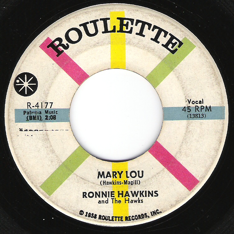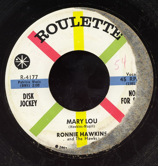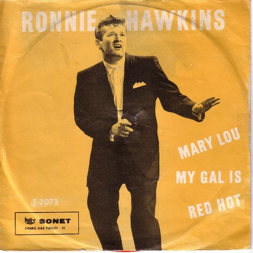 ?? 59....T 7073....RONNIE HAWKINS and the Hawks..My Gal Is Red Hot/Mary Lou (ROULETTE LP 25078/4177).......red wax