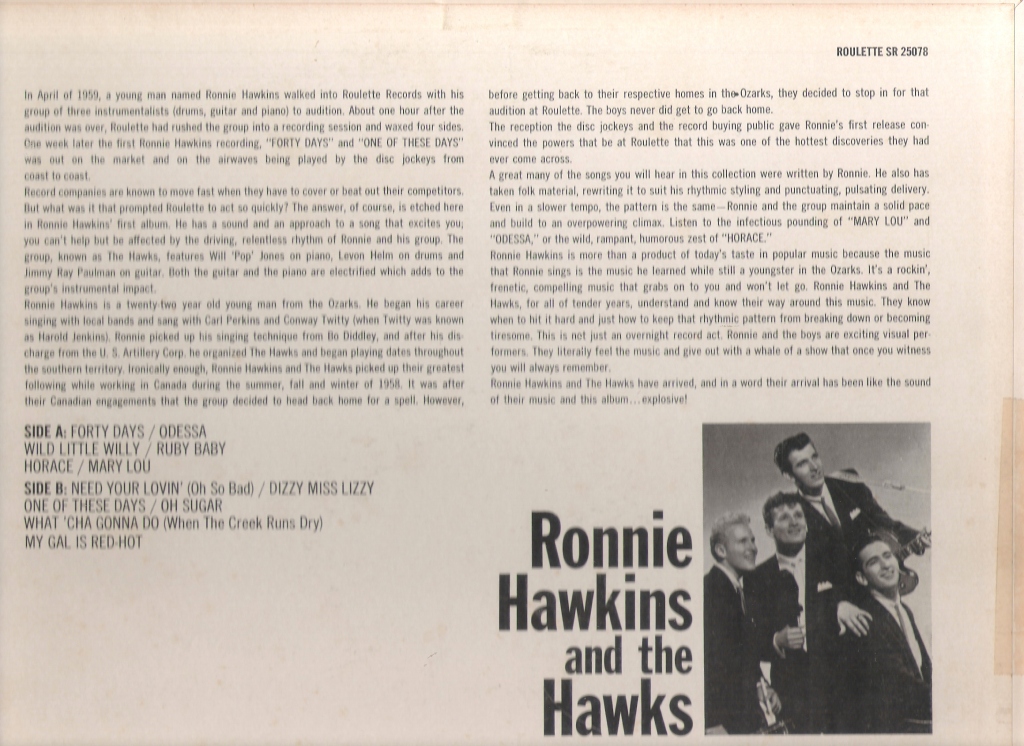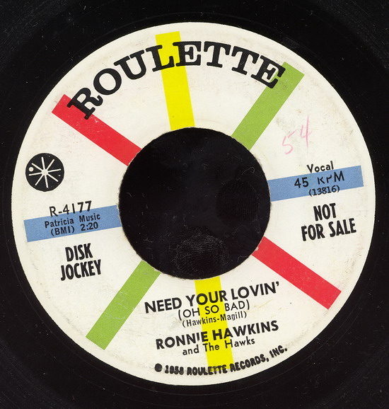 ?? 59....T 7085....RONNIE HAWKINS and the Hawks..Need Your Lovin' (Oh So Bad)/Wild Little Willy (ROULETTE 4177/LP 25078)