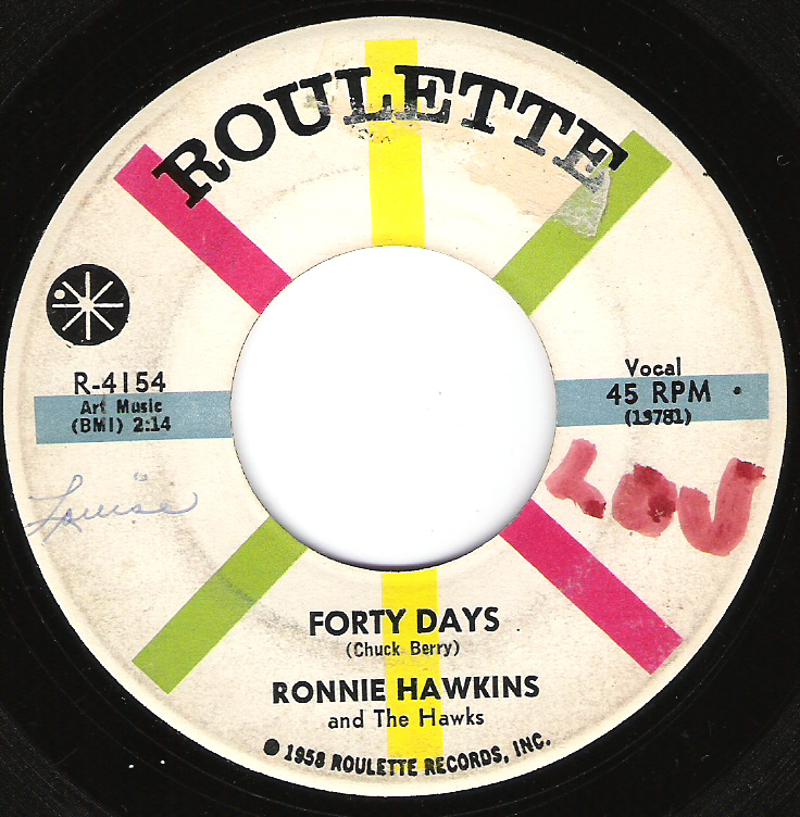 08 59....T 7059....RONNIE HAWKINS..Forty Days/One Of These Days (ROULETTE 4154)