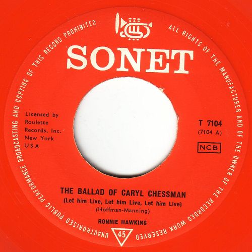 ?? 60....T 7104....RONNIE HAWKINS..The Ballad Of Caryl Chessman (Let him Live, Let him Live, Let him Live)/RONNIE HAWKINS with Joe Reisman's Orchestra and Chorus..The Tale Of Floyd Collins (ROULETTE 4231).......red wax
