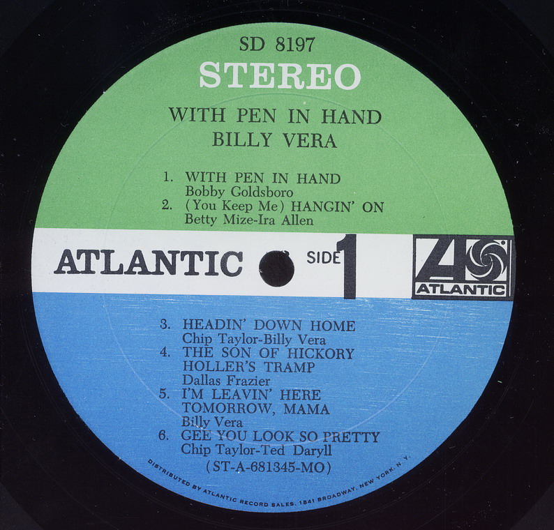 06 68....45-2526....BILLY VERA..With Pen In Hand (A-14584-MO)/Good Morning Blues (A-13648-MO)