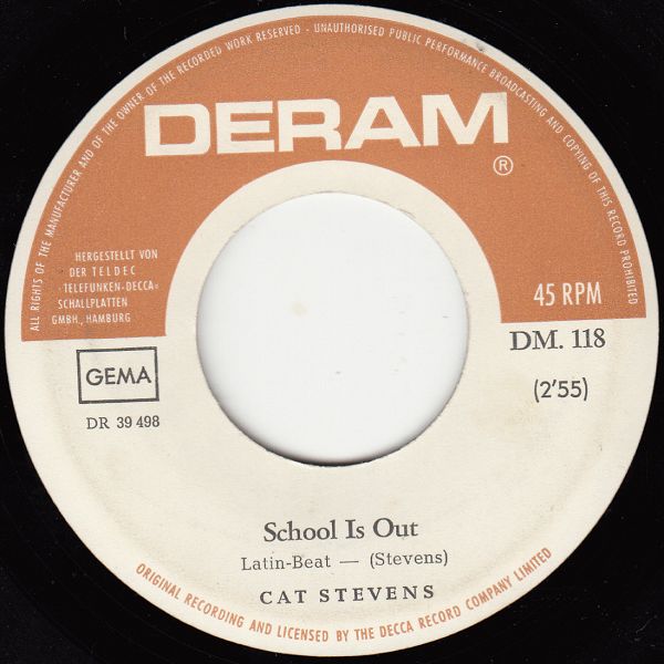 03 67....DM.118....CAT STEVENS Music Director: Alan Tew..I’m Gonna Get Me A Gun (DR.39786)/School Is Out (DR.39498)