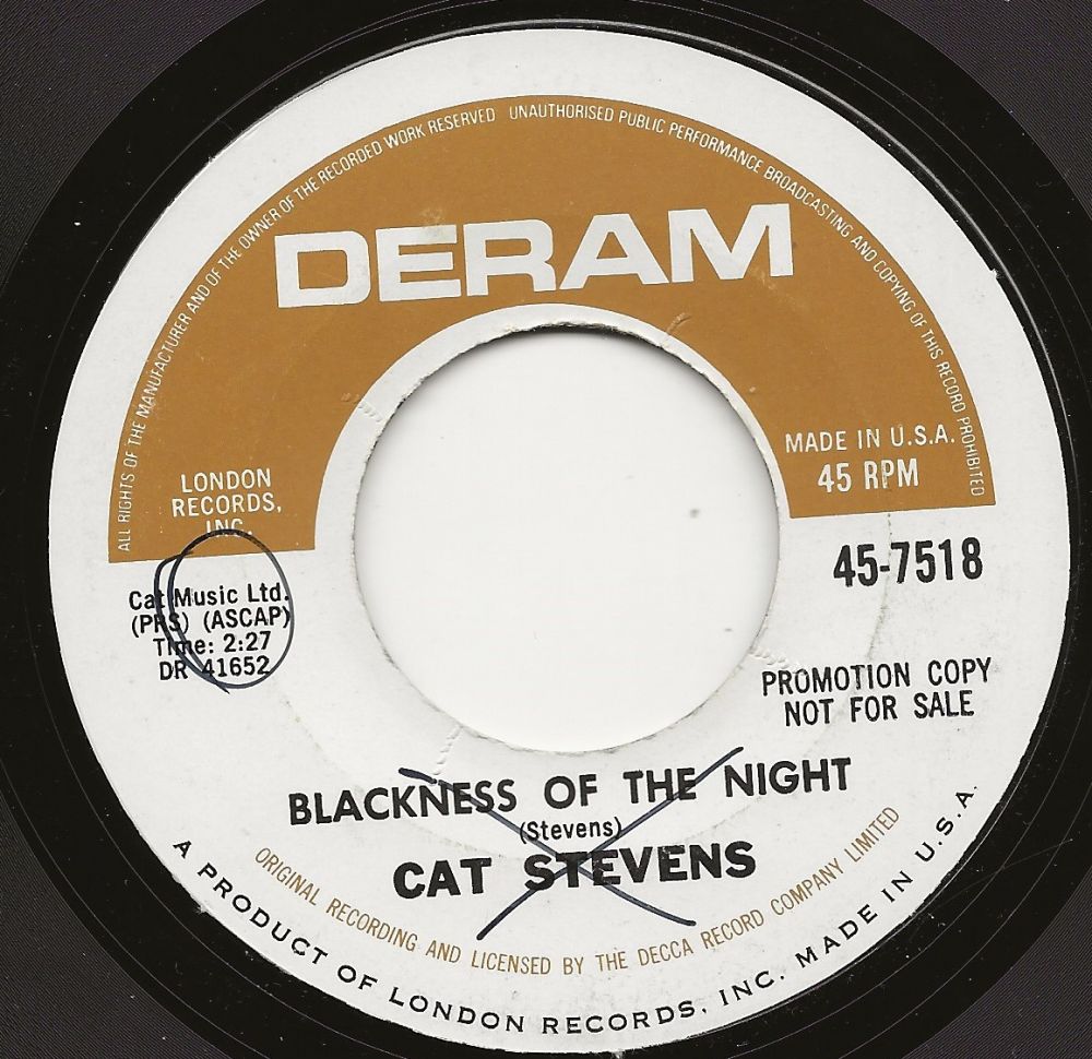 12 67....DM 156....CAT STEVENS Music Director: Ivor Raymonde..Blackness Of The Night (DR.41652)/CAT STEVENS Music Director: Phil Dennys..Kitty (CPDR.41498)