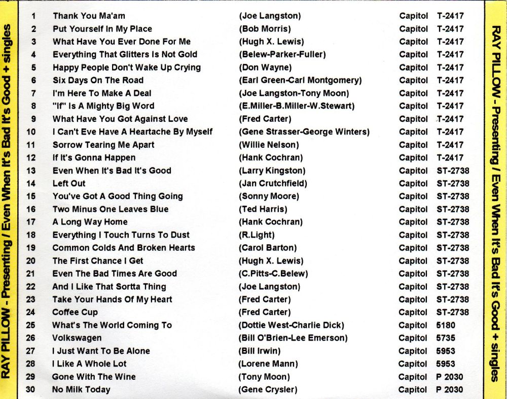 RAY PILLOW war ein Country-Sänger, der Volkswagen musikalisch vergötterte. Auf Capitol und Plantation kamen aber einige Platten. Anhänge an diesem Beitrag Dateiname: Pillow08.jpg Dateigröße: 65.32 KB Titel: Pillow08.jpg Heruntergeladen: 223 Dateiname: Pillow02.jpg Dateigröße: 253.85 KB Titel: Pillow02.jpg Heruntergeladen: 270 Dateiname: Pillow03.jpg Dateigröße: 59.96 KB Titel: Pillow03.jpg Heruntergeladen: 224