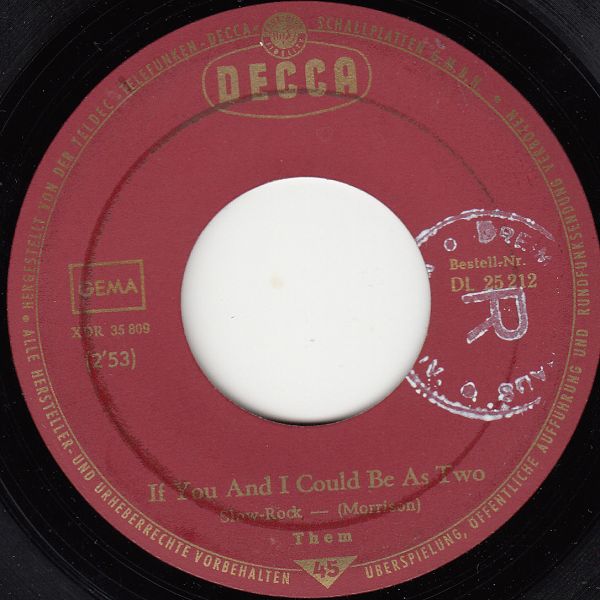 11 65....F.12281….THEM..If You And I Could Be As Two (XDR.35809)/Mystic Eyes (XDR.35807)