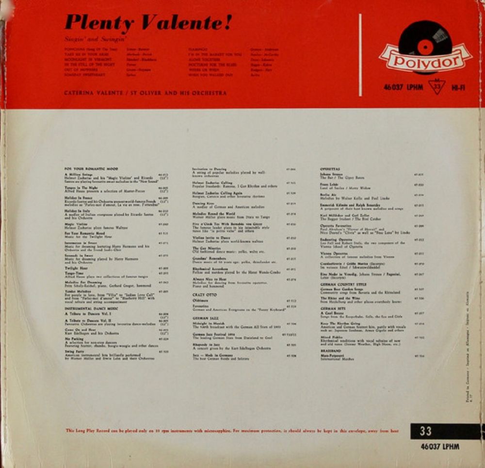 Da ich auch Hifi Fan und musikbegeistert bin, viel mir eher zufällig eine Platte von Caterina Valente in die Hände mit dem Titel "Plenty Valenty". Eine amerikanische Platte, produziert in New York mit der Bigband Sy Oliver. Das war 1958 und Caterna Valente war gerade mal 18 Jahre alt. Diese Platte betrachte ich als meine Initialzündung.