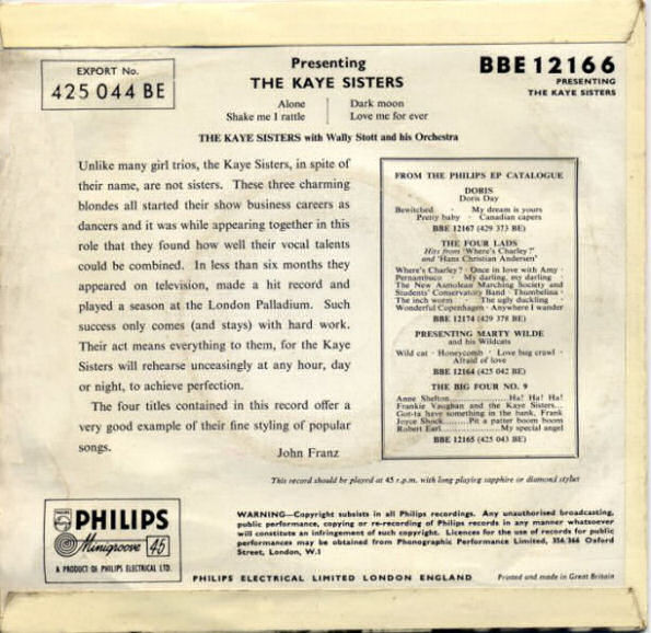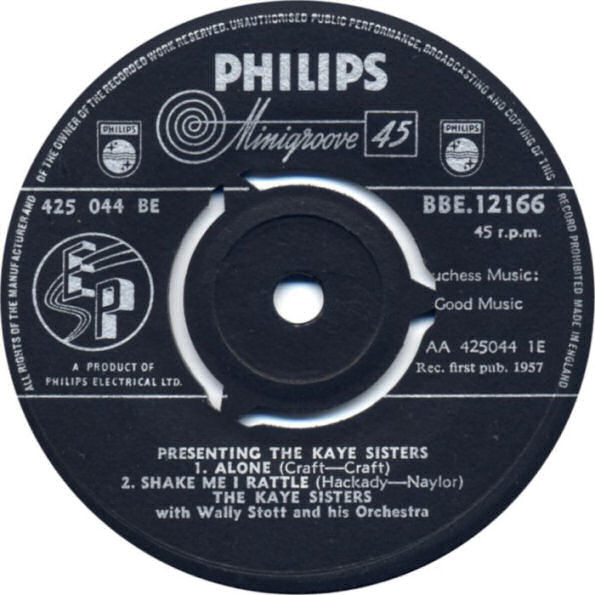 00 58….PB 752…. THE KAYE SISTERS..Alone/Shake Me I Rattle