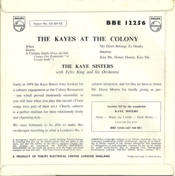 00 59….BBE 12256….THE KAYE SISTERS..The Kayes At The Colony