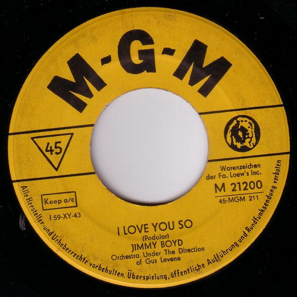 Obwohl es im Forum im Bereich "Schallplatten-Label" ausschließlich um Labels aus dem deutschsprachigen Raum geht bin ich mit meinem als bodenständig gedachten Thema "Rock'n'Roller mit nur einer Single" völlig mißverstanden worden. Ich habe jetzt für Interessenten eine Jimmy Boyd Diskografie erstellt (Word.doc), weil es doch Einiges von ihm in den USA gab.