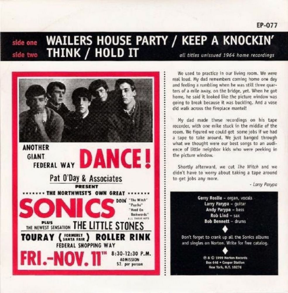 diese Sonics gründeten sich 1960 Anhänge an diesem Beitrag Dateiname: front.jpg Dateigröße: 291.36 KB Titel: Heruntergeladen: 242 Dateiname: back.jpg Dateigröße: 110.81 KB Titel: Heruntergeladen: 234