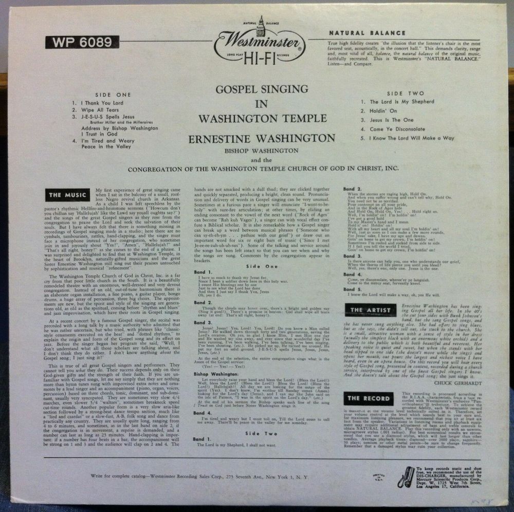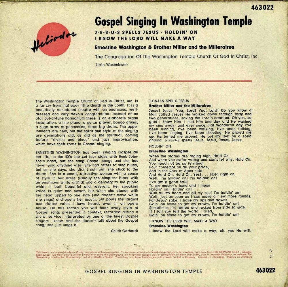 Platten zu finden war, sang Gospel. Einige Veröffentlichungen waren als