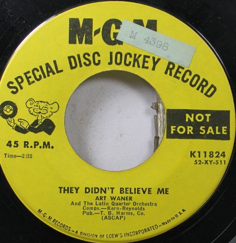 09 54....K11824....ART WANER And The Latin Quarter Orchestra..They Didn't Believe Me (52-XY-511)/While A Cigarette Was Burning (52-XY-506)