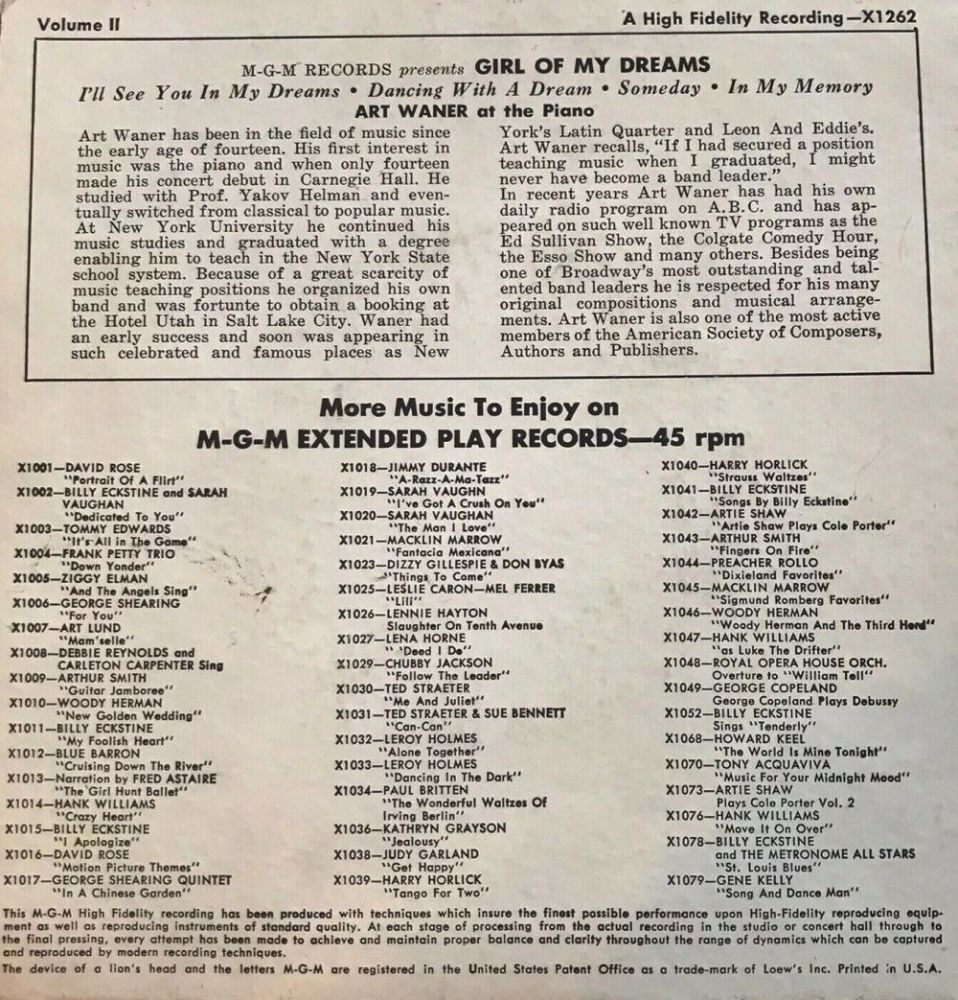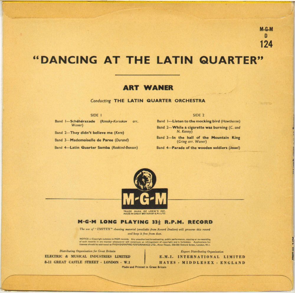 Im Jahre 1952 kam die LP "Dancing at the Latin Quarter“ von Art Waner auf den Markt (#2), wovon im Jänner 1953 zwei Titel dieser LP als Single veröffentlicht wurden. Die von Dieter in #1 vorgestellte "Versuchs-Single" enthielt ebenfalls zwei Titel dieser LP, kam aber erst im September 1954 auf den Markt. Im Jahre 1955 gab es nochmals zwei Singles mit seinem Orchester, allerdings ohne “Latin Quarter“ und ab 1956 zog er sich ganz auf sein Klavier zurück, welches er offenbar nur mehr auf EPs bearbeitete.