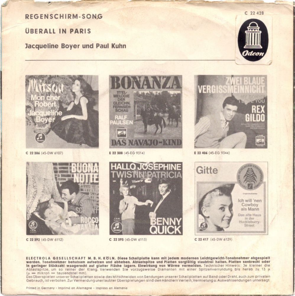 Ansonsten ist der Regenschirm- Song eine gelungene Coverversion des Barry deVorzon Titels "Honey Bunny", welches auf RCA erschienen war. Kleines Gitarren- Break ist drin, und Paulchen klimpert auch ordentlich...