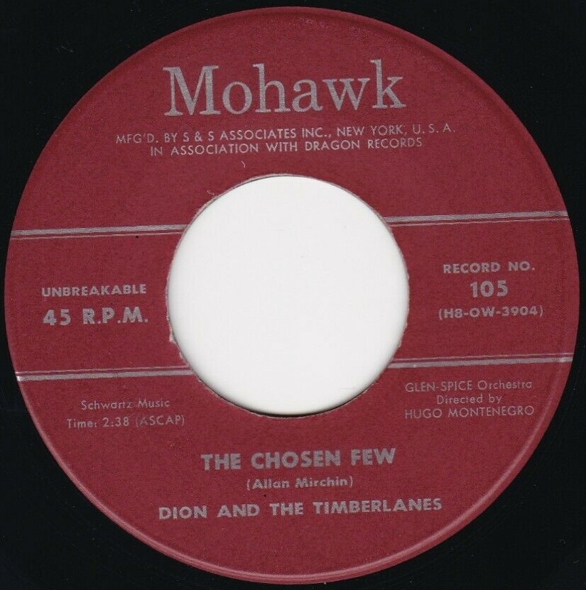 Da Hugo Montenegro gerade eine neue Single mit The Timberlanes und dem Glen Spice Orchestra (Eliot Glen, Irving Spice) arrangierte, ließ man Dion den Leadgesang über die bereits für Schwartz Music angefertigten Lieder “Out In Colorado“ und “The Chosen Few“ singen und war begeistert. Dion traf also im Studio nie auf The Timberlanes. Die Platte Mohawk 105 erschien im April 1957 und war ein lokaler Treffer in Boston (“The Chosen Few“ soll dort in den Top 10 gewesen sein), den man im Juni 1957 unter gleicher Bestellnummer modifizierte, indem man “Out In Colorado“ nun von ehemals 2:30 Minuten auf 2:03 Minuten kürzte, um bessere Laufzeiten im lokalen Funk zu ergattern. Die kürzere Version setzte sich im Laufe der Monate bei den Zuhörern vornehmlich an der Ostküste fest.
