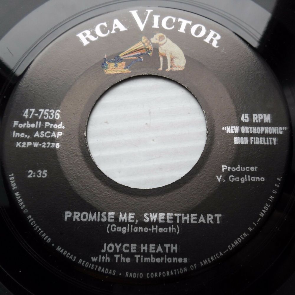 More accurately, the record is shown by Joyce Heath with The Timberlanes. Though this side shows as being written by Gagliano and Heath, the tune itself was written by Allan Mirchin and originally recorded by Dion and The Timberlanes nearly two years earlier called “The Chosen Few“.