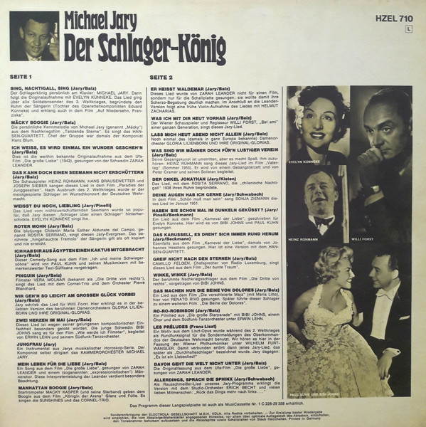Unvergessene Schlager von ihm sind u.a. "Sing, Nachtigall, sing" oder auch