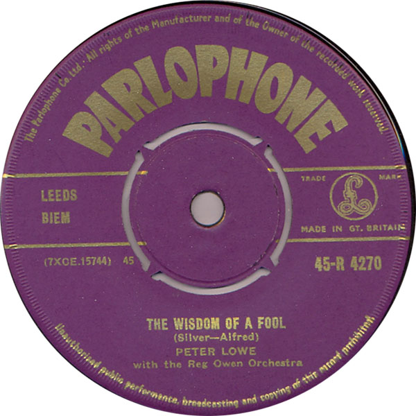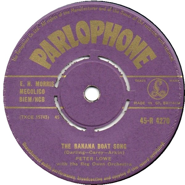 02 57….R. 4270…. PETER LOWE with the Ron Goodwin Orchestra..The Banana Boat Song/The Wisdom Of A Fool