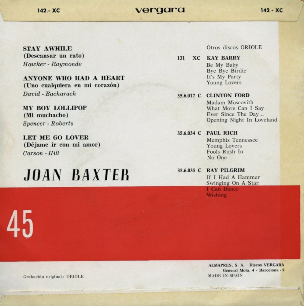 Joan Baxter war später mit vielen Titeln auf dem Billiglabel Embassy zu finden. Bei Parlophone traf sie auf das Orchester von Ron Goodwin.