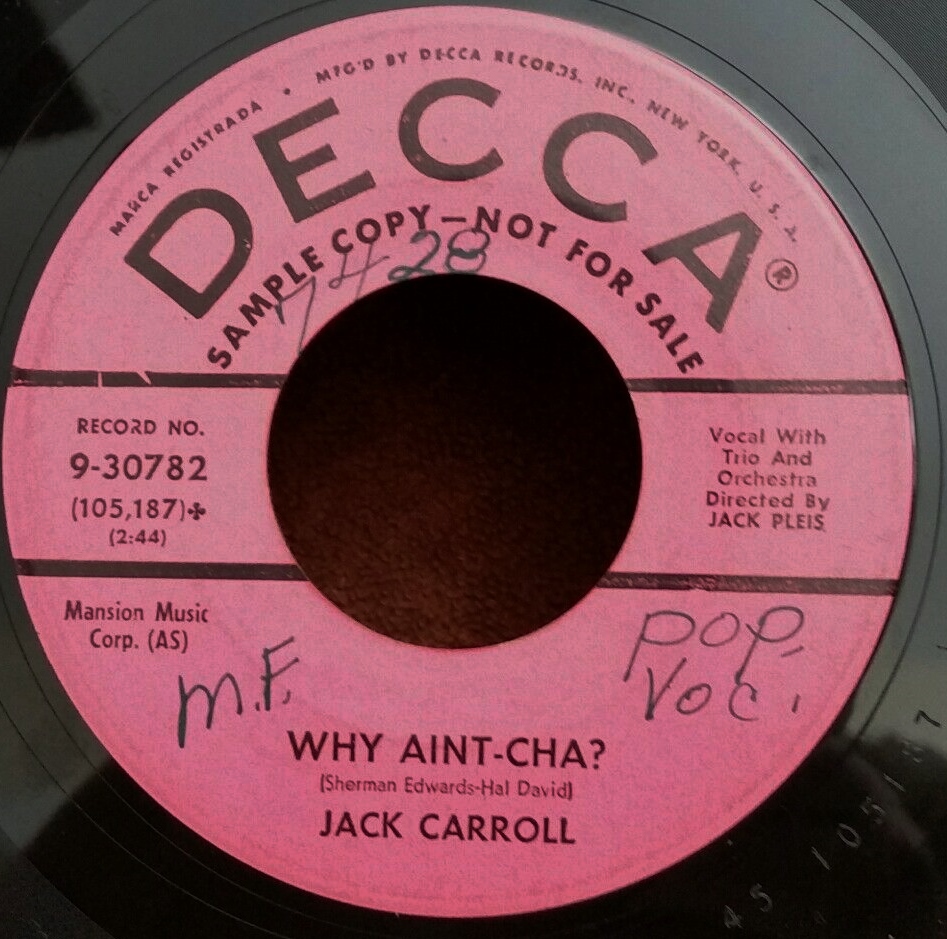 12 58....9-30782....JACK CARROLL..Why Aint-Cha? (105,187)/Flowers And Candy (105,184)